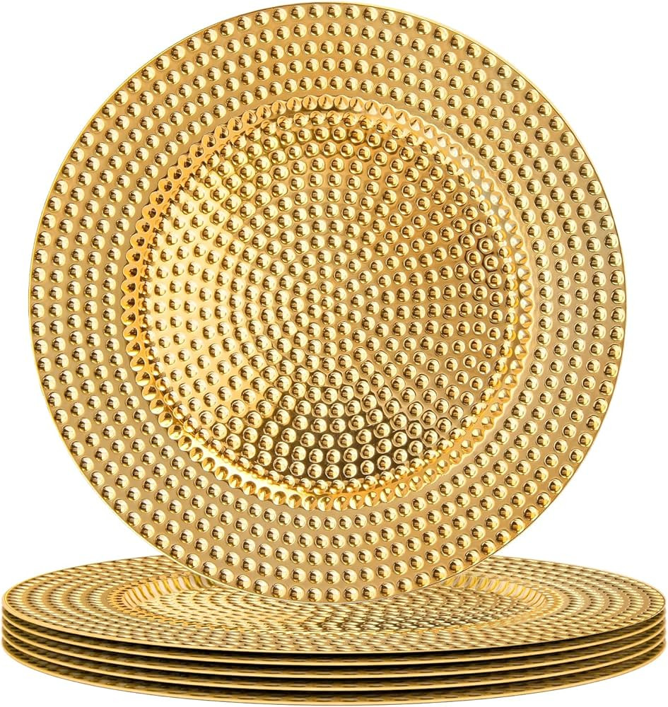 MAONAME 13" Gold Charger Plates Set of 6, Plastic Chargers for Dinner Plates, Electroplated Plate...