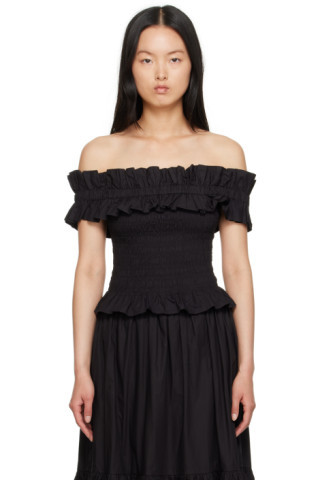 GANNI - Black Smocked T-Shirt