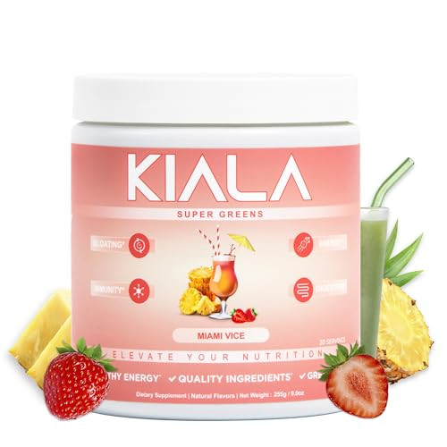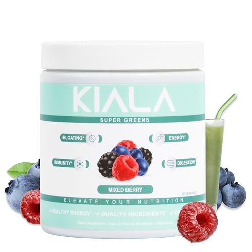 Kiala Nutrition Super Greens, Organic Greens Powder with Spirulina & Chlorella for Digestion, Gut...