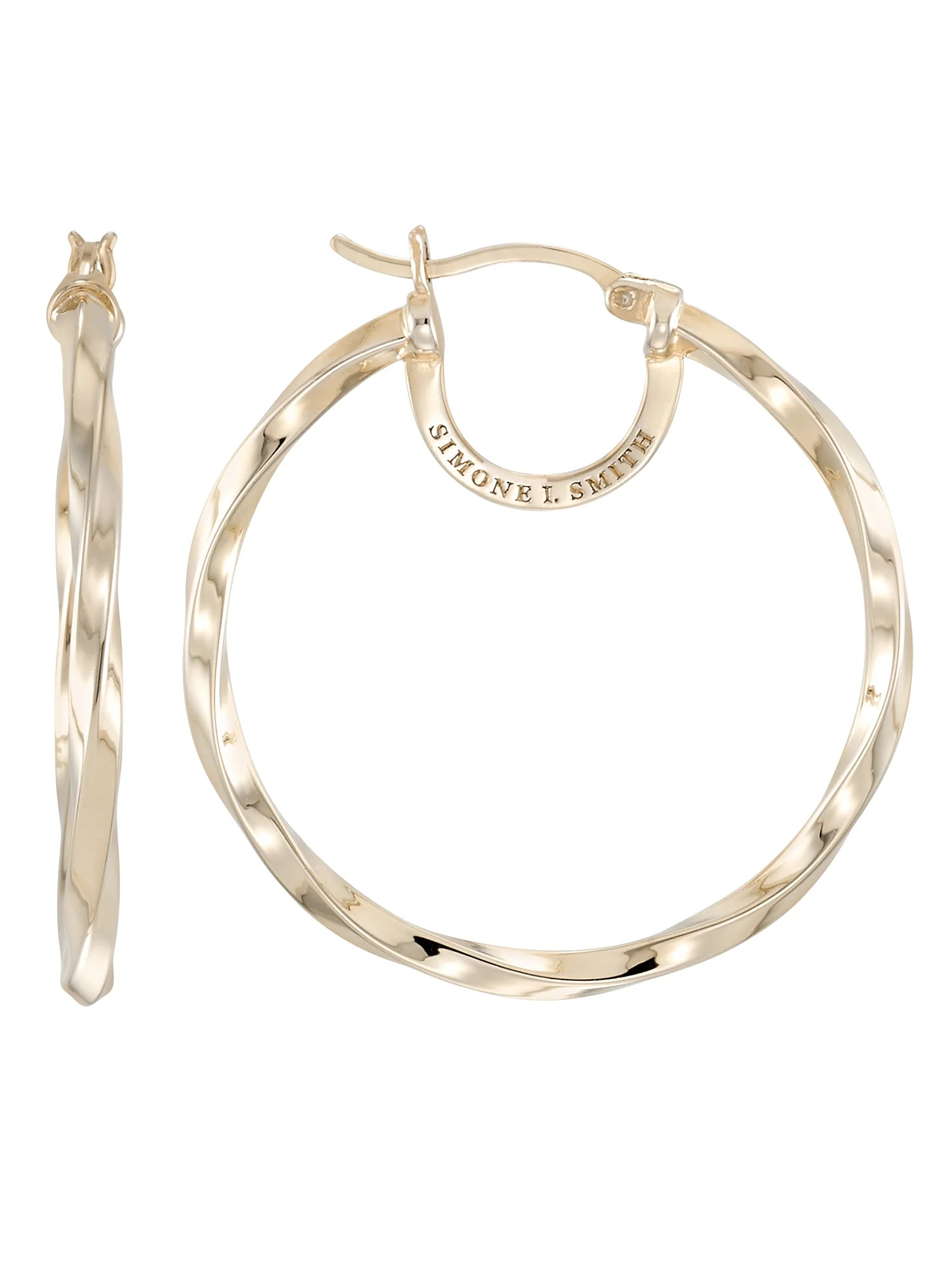 Simone I. Smith Sterling Silver Gold Tone High Polished Round Twist Hoop Earrings