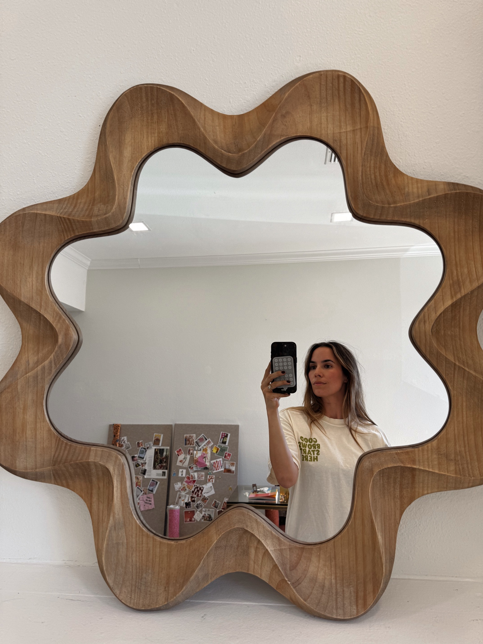 Mirror, sound panels for vision boards, accent chairs, console linked.