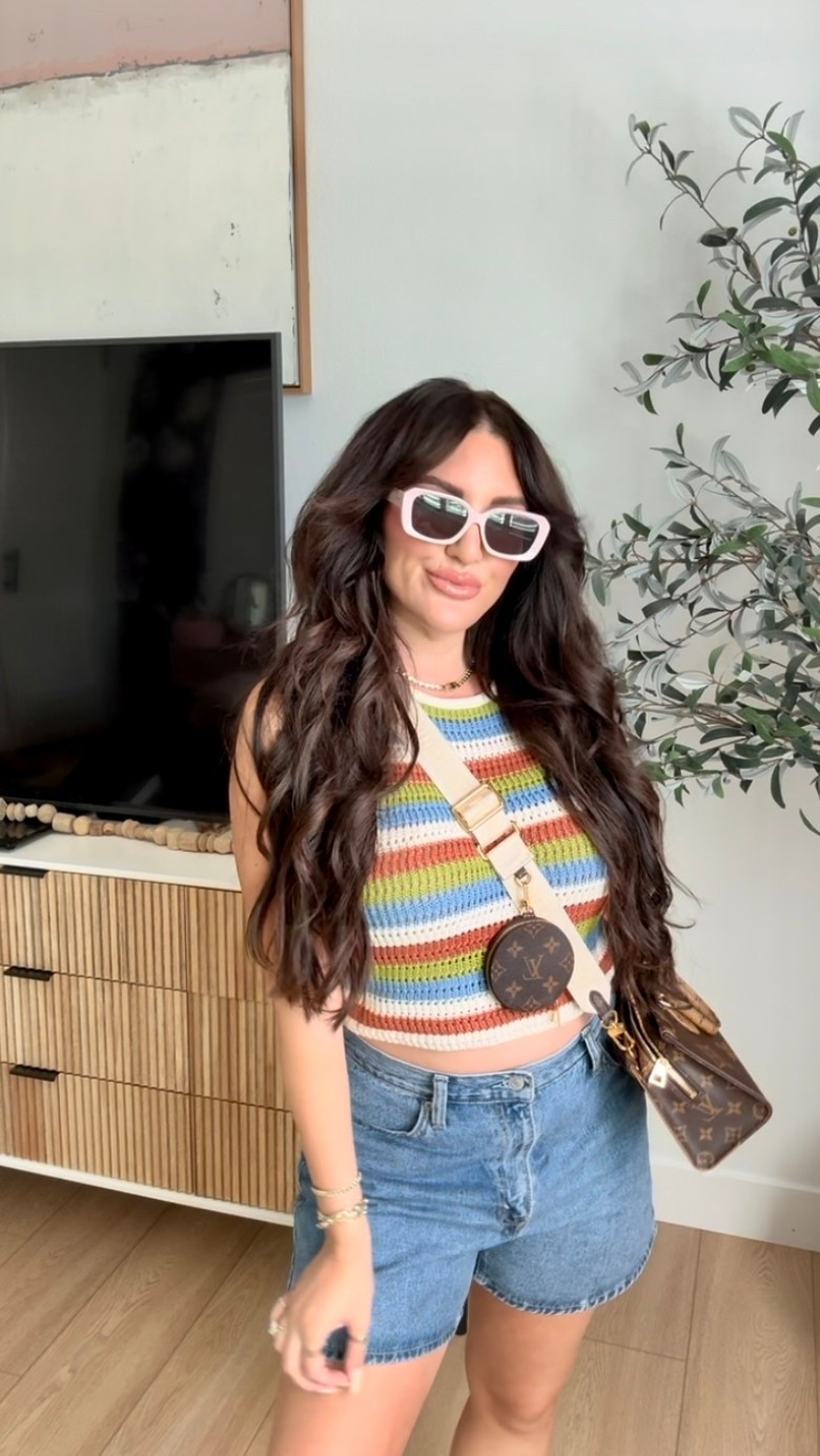 I am obsessed with this striped cardigan paired with breezy blue shorts for a fresh, preppy vibe. Add some classic white sneakers and gold hoops to keep it effortless and chic. โœจ๐Ÿ‘Ÿ