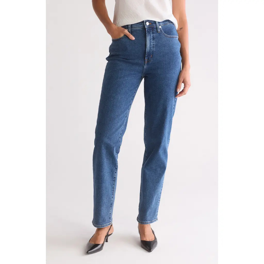 Madewell High Waist Straight Leg Jeans in Bright Indigo Wash at Nordstrom Rack, Size 27Tall