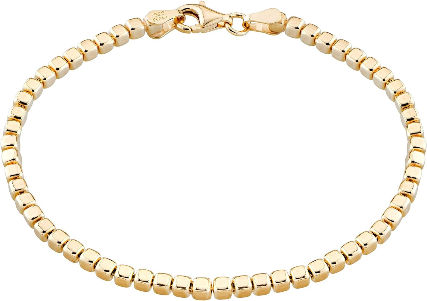 Miabella 18K Gold Over 925 Sterling Silver Organic Cube Bead Chain Bracelet for Women Men, Handma...