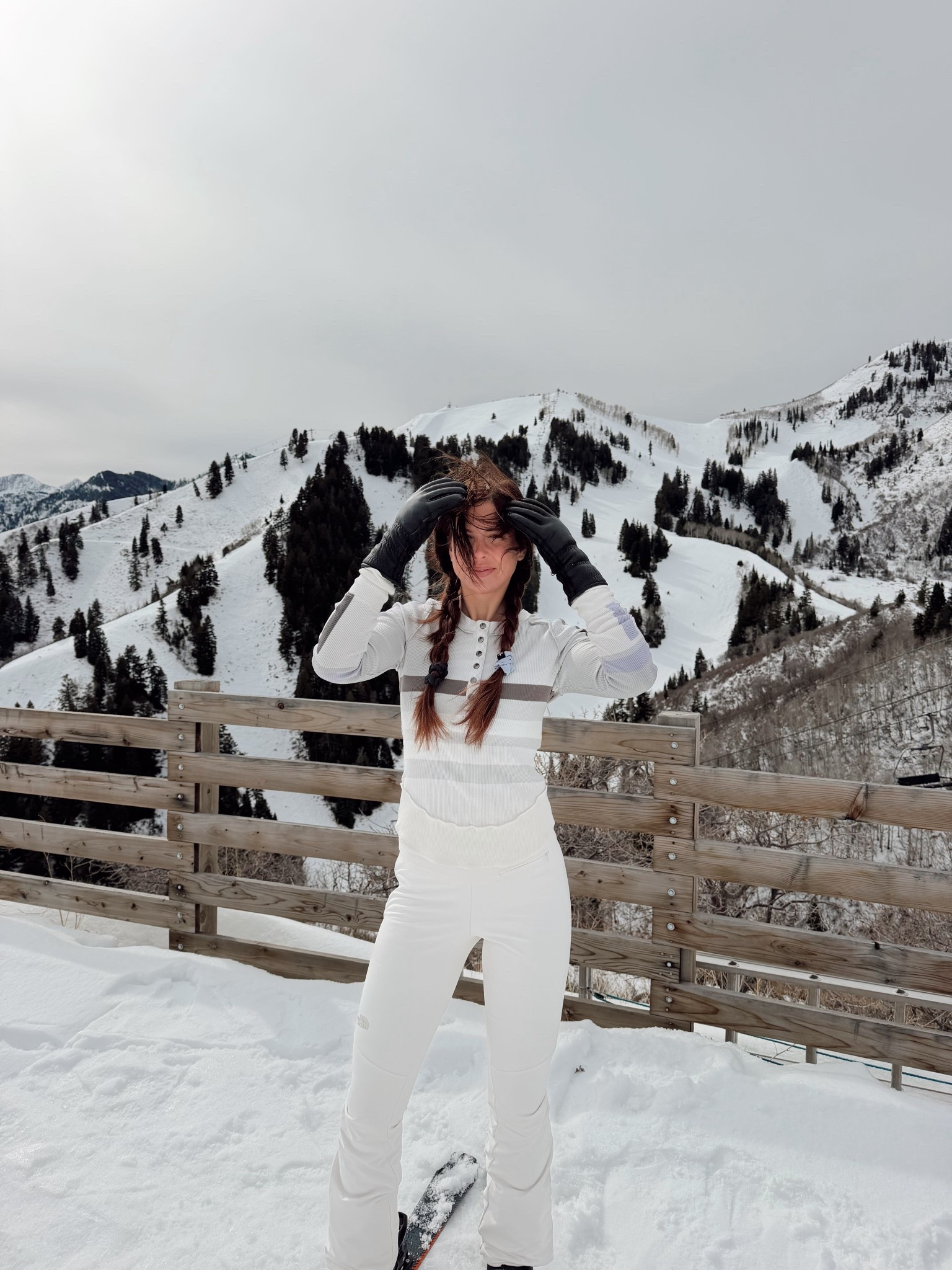 Suit isn’t available on LTK - it’s from My Sunday Ski (Velocity Gstaad Ski Suit in cream) & (Ribbed Base Layer Set in cream)  hat is the mink faux fur bucket hat