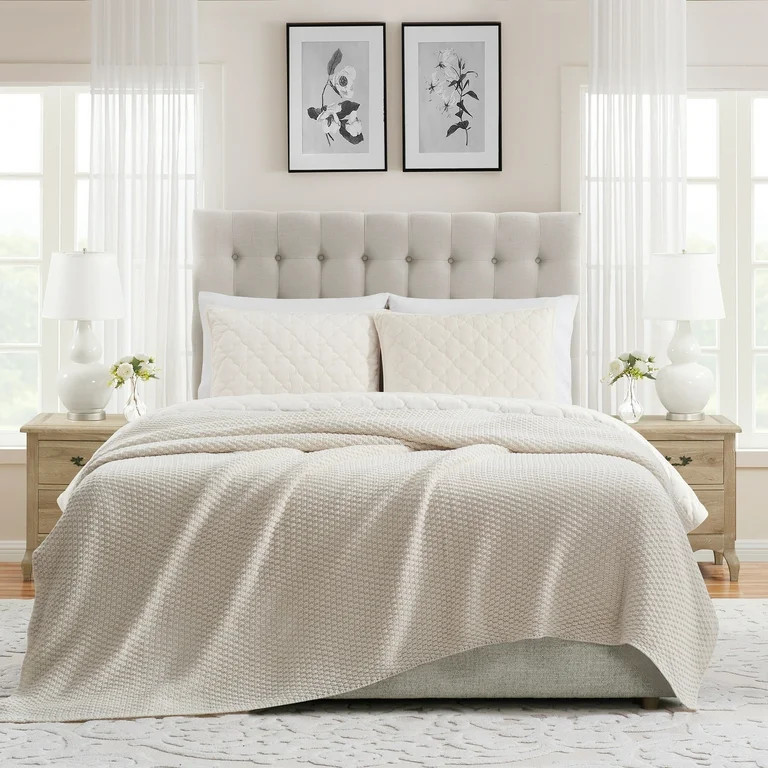 Bedroom bedding, rug, curtains