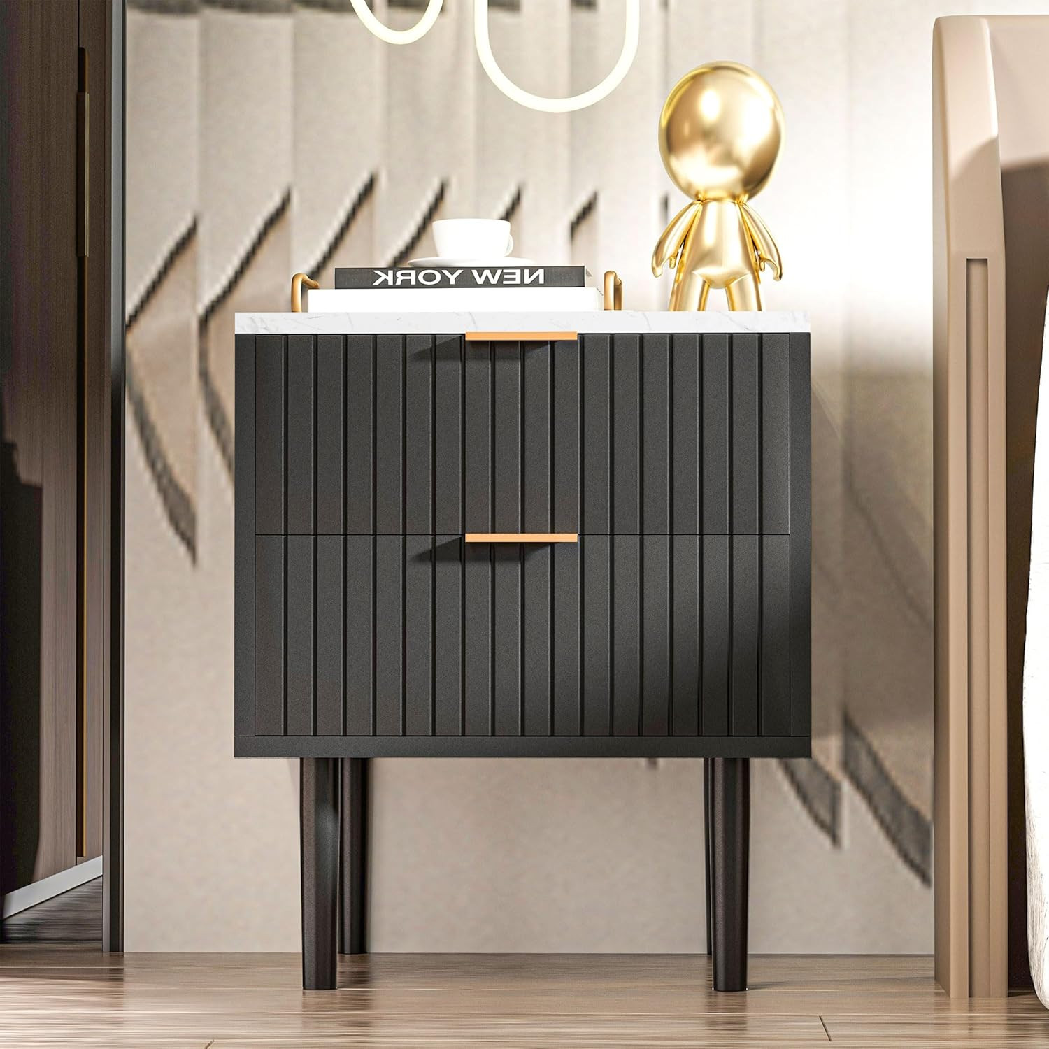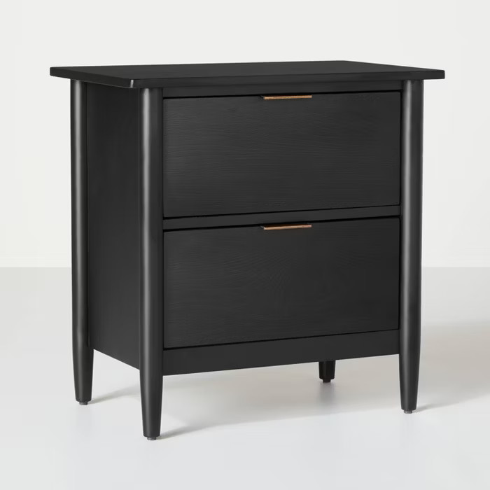 Nightstands of various price points. Black nightstands and wood nightstands.