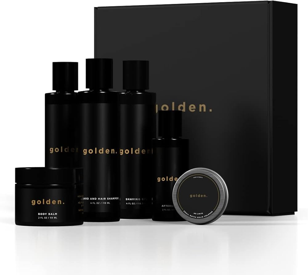 Golden Grooming Co. Grooming Care Kit For Men - Christmas Gift for Him - Hydrating Body Care, Bea...