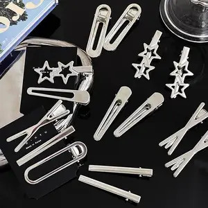 3/6/9/12Pcs Girl Y2k Hair pins Silver Metal Duckbill Clip Women Hair Clips Side Bangs Female Ladi...