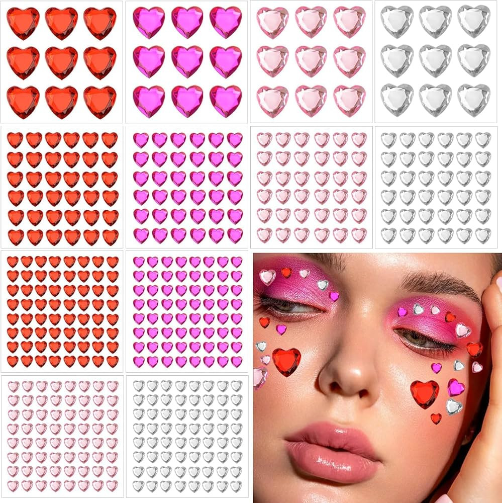 Dazzhues 436 PCS Heart Rhinestones Self Adhesive Sticker Acrylic Heart Gems for Face Hair Body Bl...