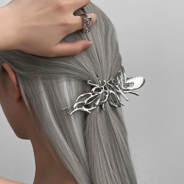 Butterfly Hair Clip Bright Silver Cross Geometric Hairpin Rose Flower Hair Claw Woman Girls Styli...