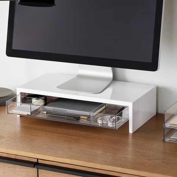 Keep pens, papers, chargers, and notebooks tidy with drawer trays, risers, or desktop bins.