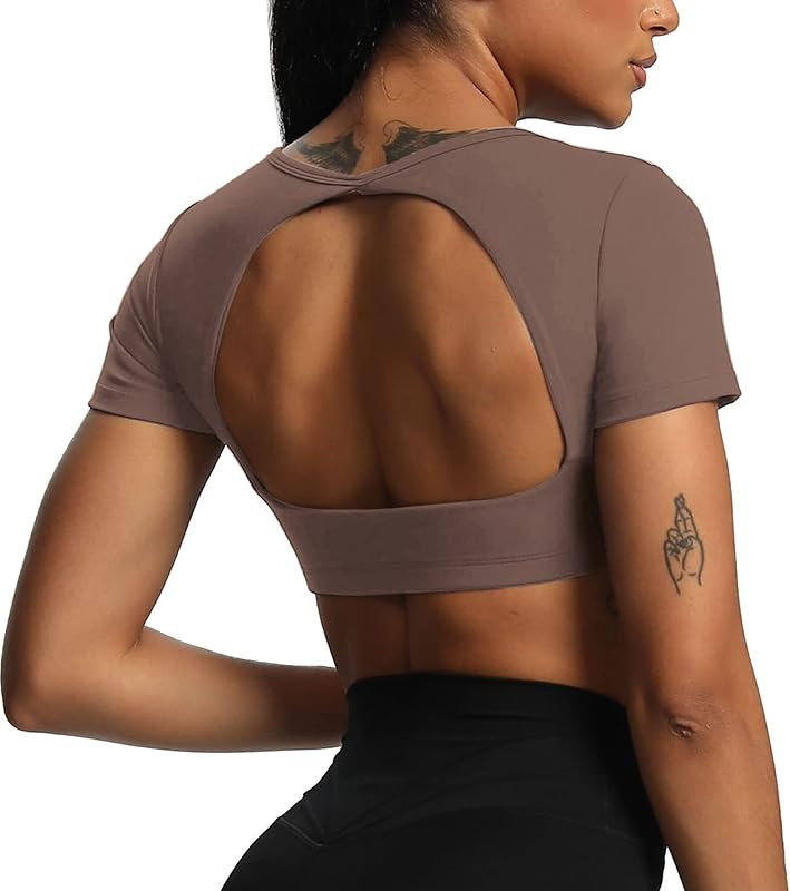 Aoxjox Short Sleeve Crop Tops for Women Clarissa Hollow Back Workout Crop T Shirt Top