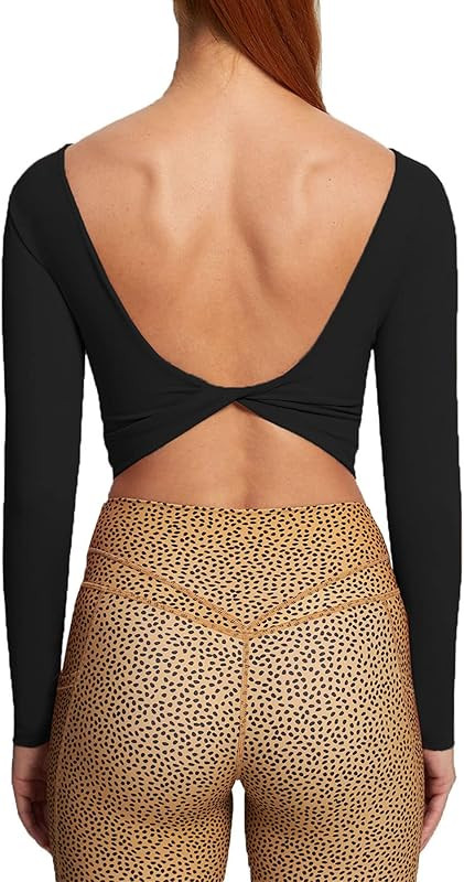 Aoxjox Long Sleeve Crop Tops for Women Emma Twist Back Workout Crop T Shirt Top