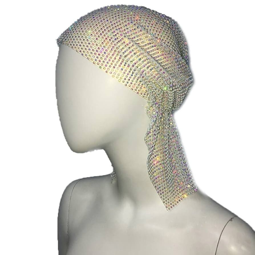 Rhinestone Head Scarf Bling Hollow Headdress Fashion Fishnet Headscarf Hip Hop Turban Hat Hair Ac...