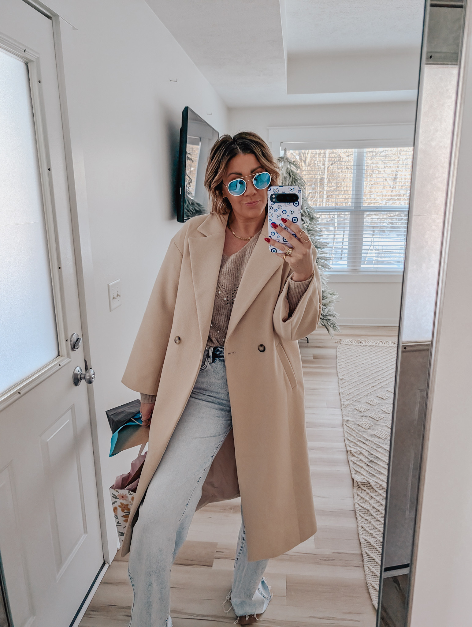 LOVE the pop of color with the neutral outfit! These Ray Bans are SO good. Also, this Amazon coat is a 10/10 wearing a L