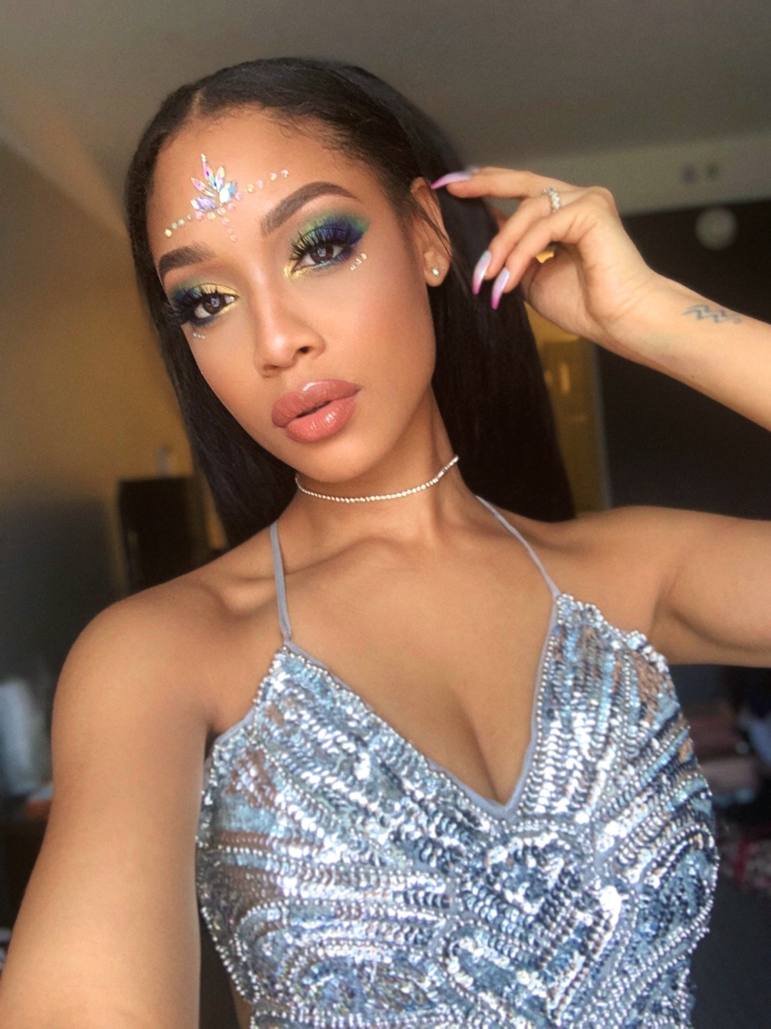 ✨ Sparkle season is always in style πŸ’Ž Sometimes you just have to pop out, shine a little brighter, and have fun with your look. Face gems, sequin, ripped denim, and a bold pop of yellow, because confidence is the best accessory. ✨