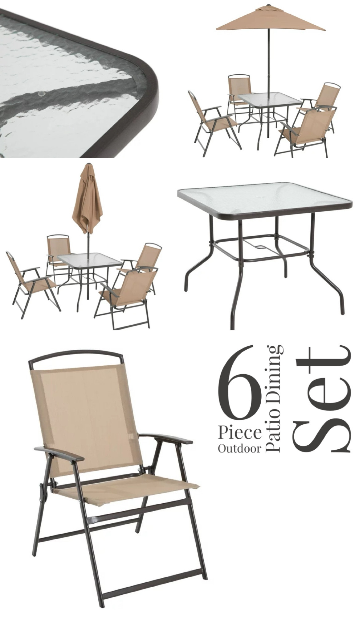 Mainstays Albany Lane 6 Piece Outdoor Patio Dining Set, Tan | Walmart (US)
