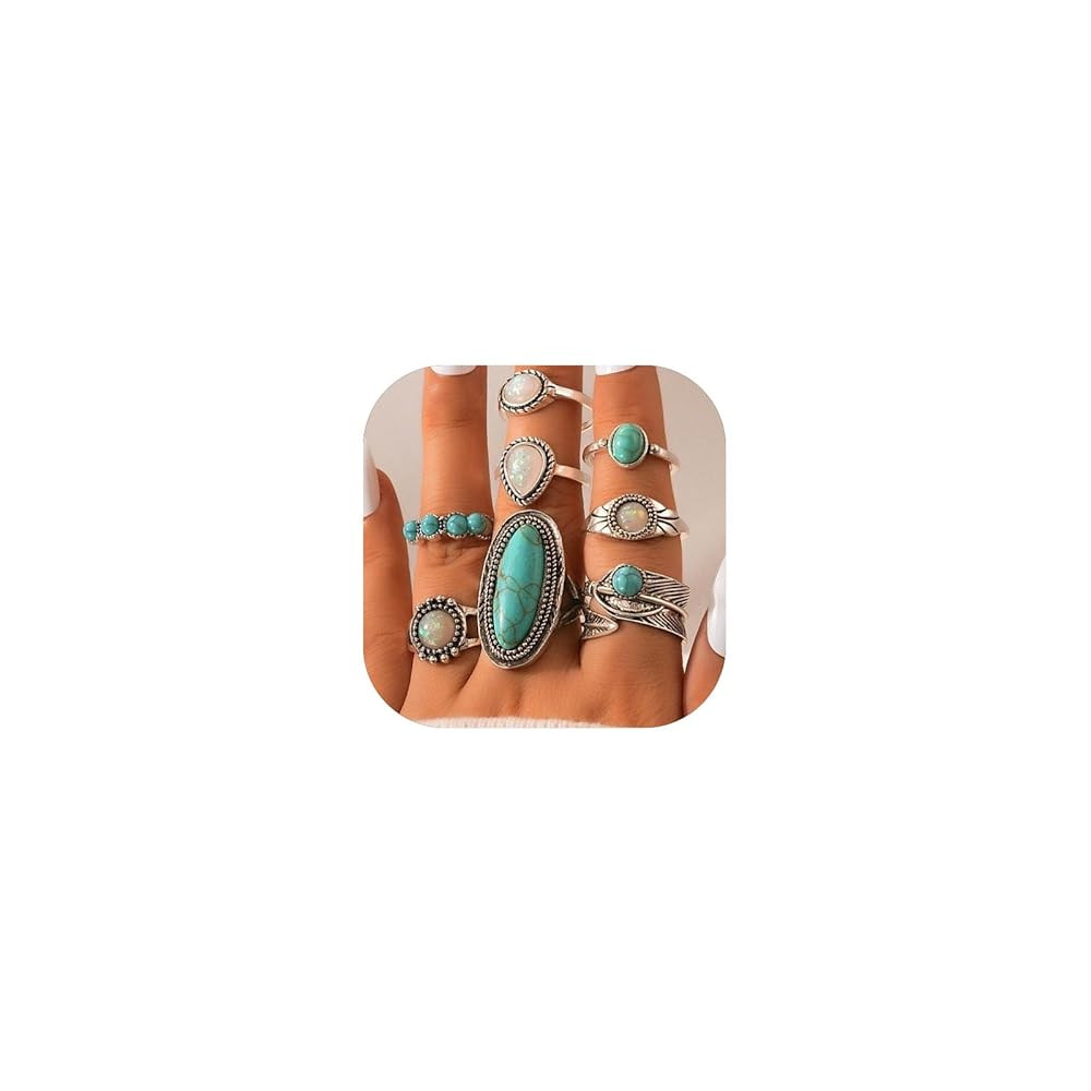Turquoise Rings for Women Bohemian Turquoises Ring Set Vintage Western Rings for Finger Stackable...