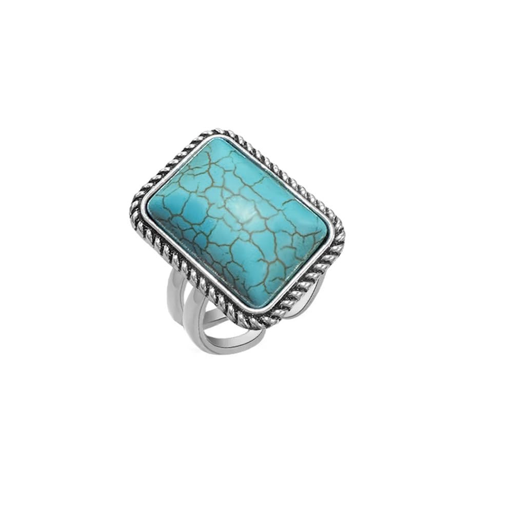OIDIMS Boho Turquoise Square Ring for Women Antique Silver Open Adjustable Vintage Stackable Midi...