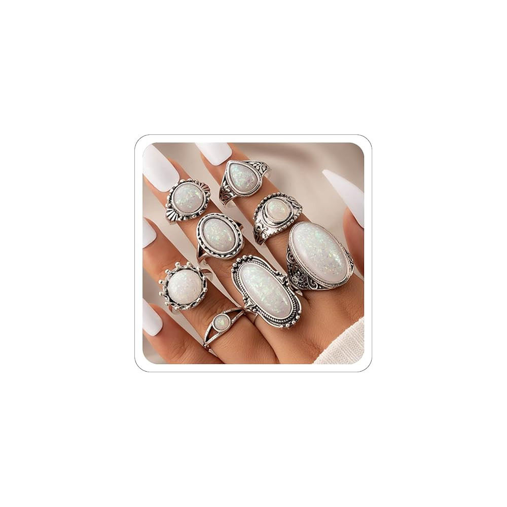 Subiceto 70 Pcs Vintage Crystal Ring Set Silver Knuckle Rings for Women Bohemian Stackable Joint ...