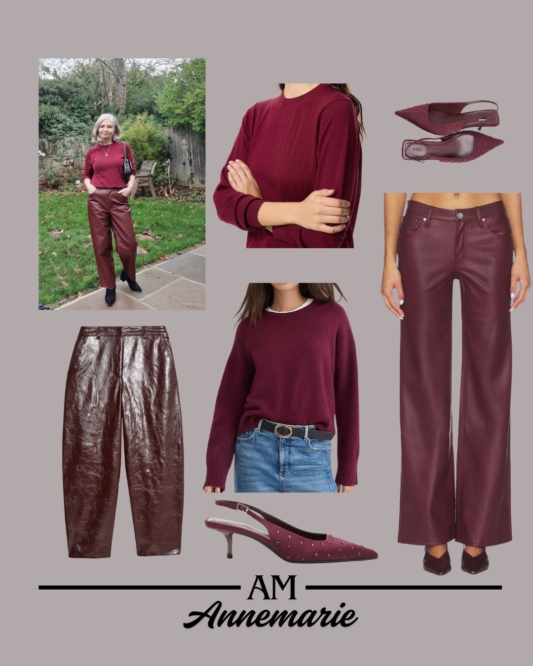 Burgundy leather, leather pants, leather trousers, burgundy knit, merino wool,