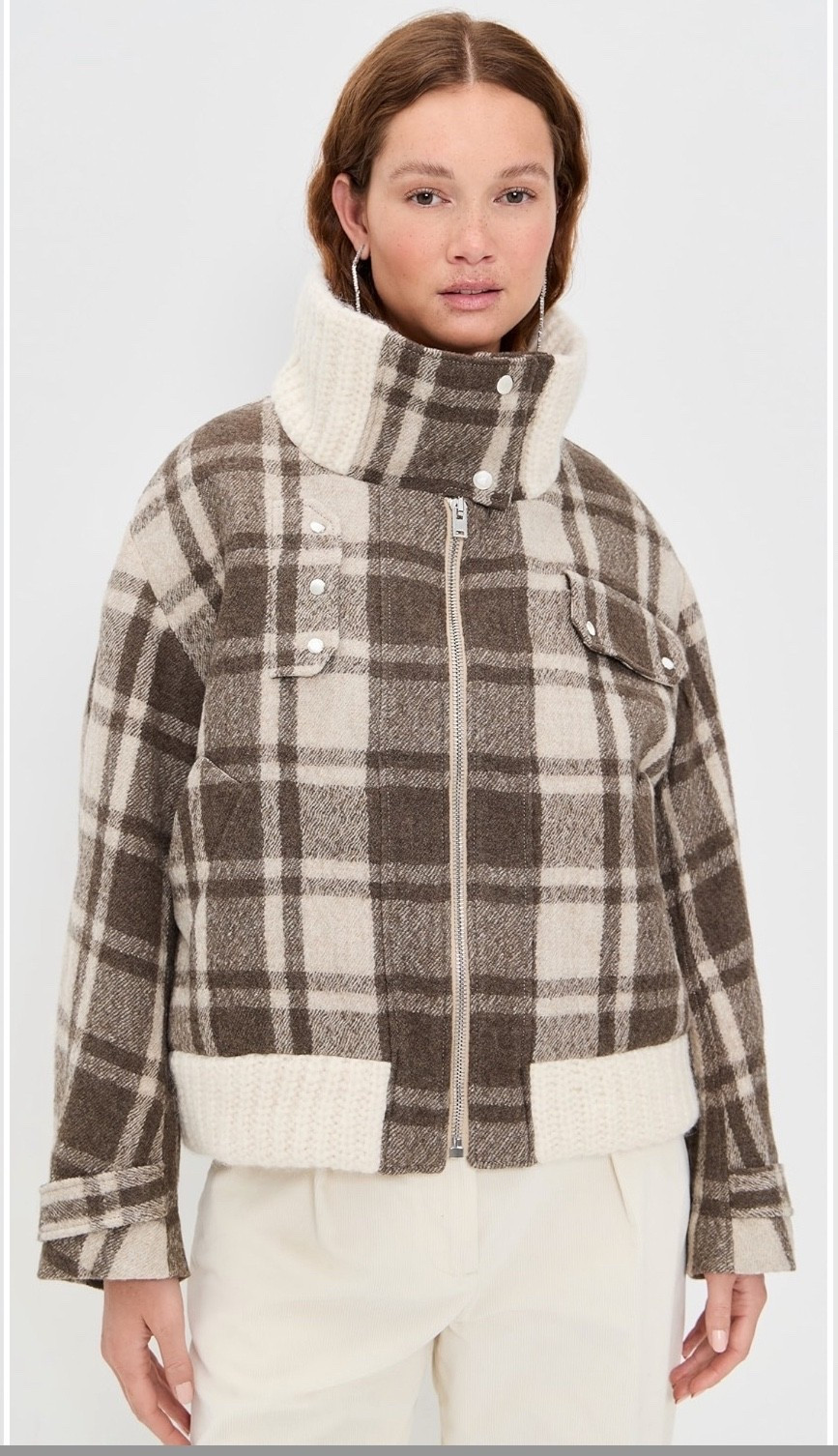 Checked Teddy Jacket with Zipper | Saks Fifth Avenue