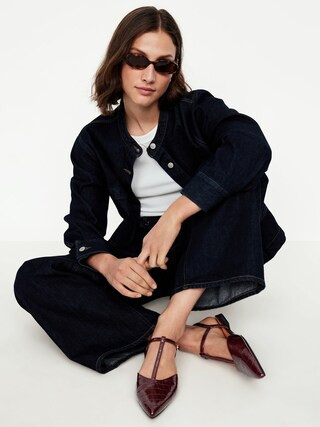 Long-Sleeve Button-Down Cropped Denim Shirt