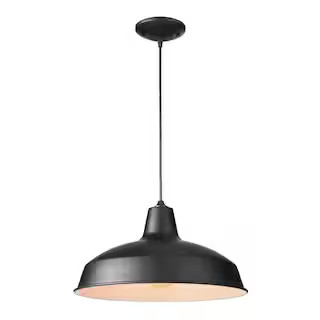 1-Light Black Warehouse Pendant Hanging Light with Metal Shade