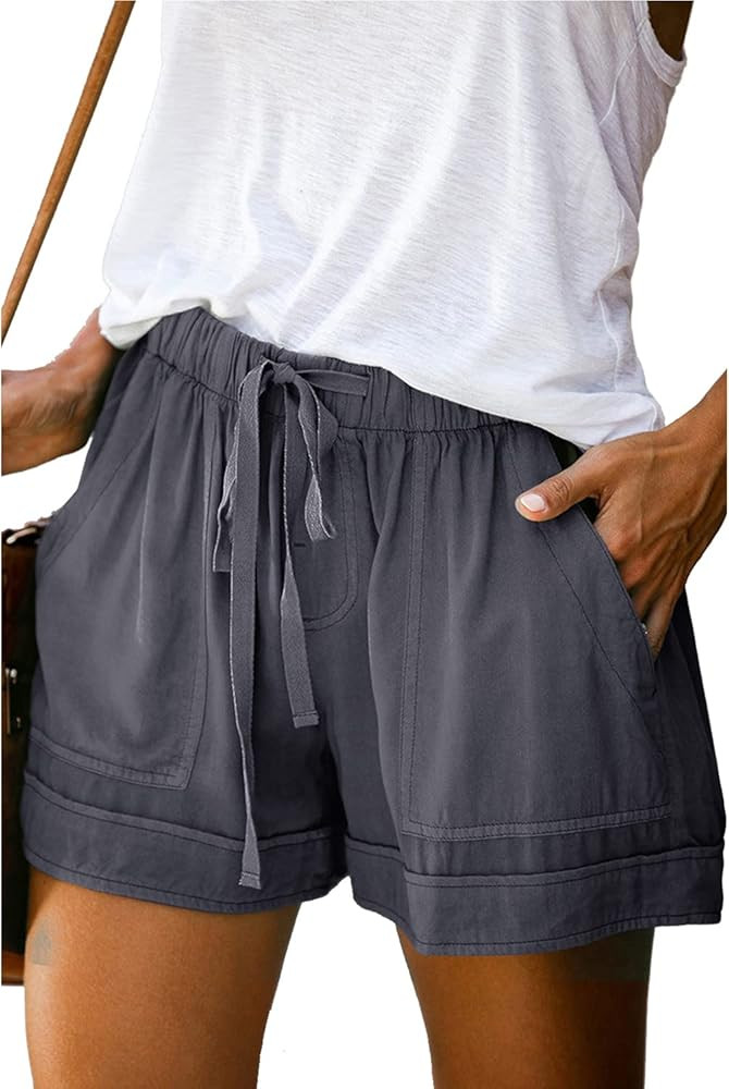 Mosucoirl Women Comfy Drawstring Casual Elastic Waist Pure Color Shorts Summer Beach Lightweight ...