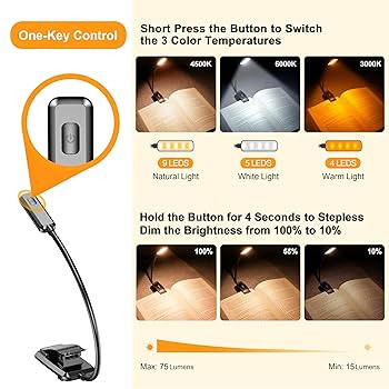 Gritin 9 LED Rechargeable Book Light for Reading in Bed - Eye Caring 3 Color Temperatures,Steples...