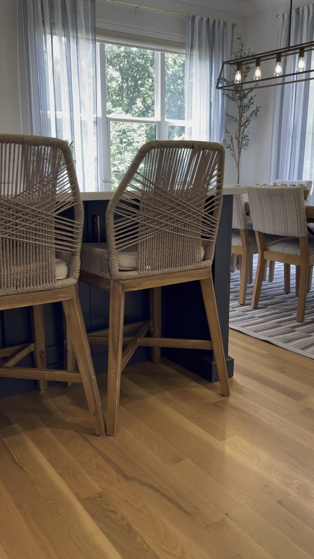 Earthy Modern Kitchen with Navy & Brass accents, Lots of texture and Family Friendly finishes