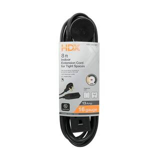 HDX 8 ft. 16/3 Light Duty Indoor Tight Space Extension Cord with Banana Tap, Black HW1638HDBF - T...