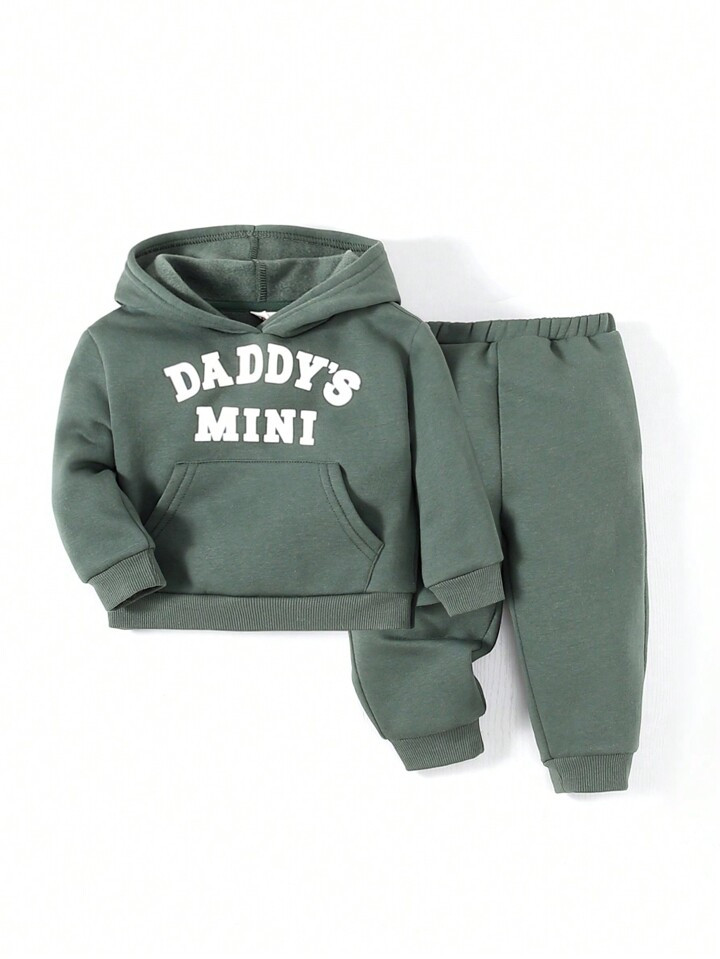 Cozy Cub Baby Boy Letter Graphic Kangaroo Pocket Hoodie & Sweatpants