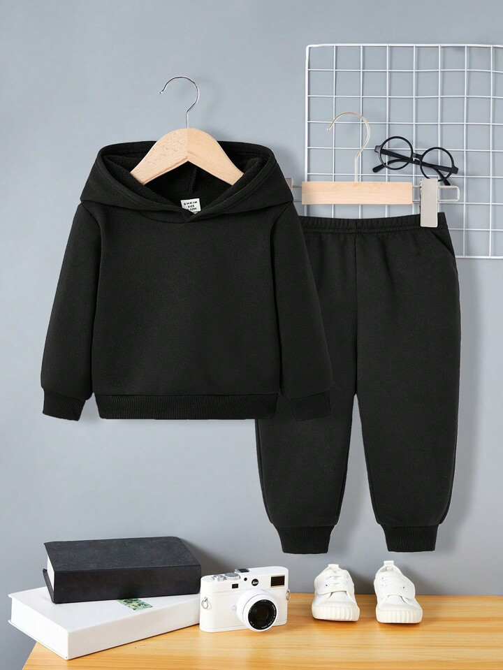 SHEIN 2pcs Baby Boy's Solid Color Long Sleeve Sweatshirt And Casual Jogger Pants Set