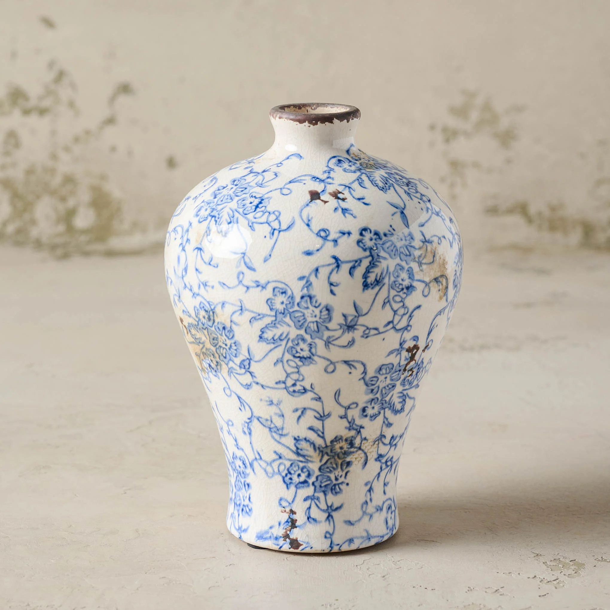 Blue and White Distressed Vase