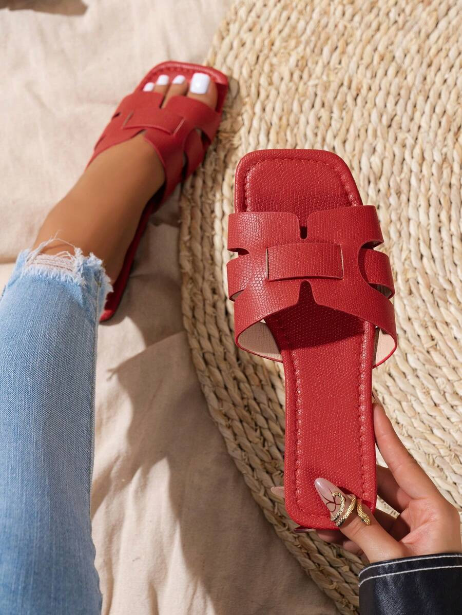 New Spring/Summer H Slippers For Women, Stylish & Casual One-Word Roman Trend, Slip-On Open-Toe S...
