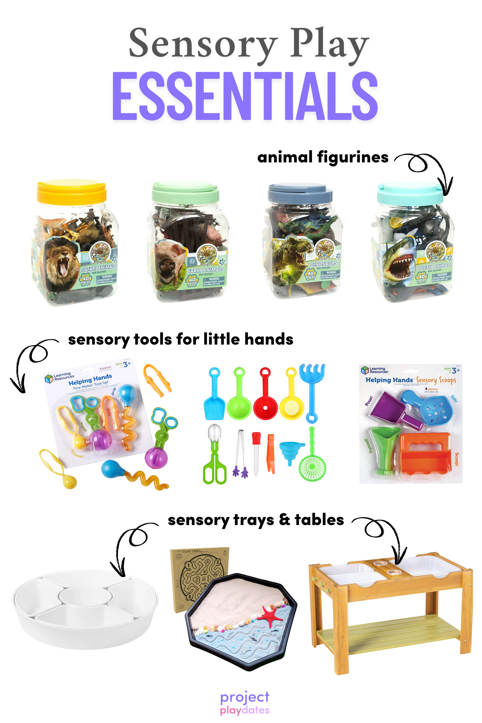 MBLFHSG 11 Pcs Sensory Bin Filler Fine Motor Toys Set, Sensory Bin Tools with 5 Scoops, Tweezers, Silicone Mini Tong, Scissors Clip, Dropper, Beach Shovels, Funnel for Kids, Sensory Bin Accessories | Amazon (US)