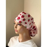 strawberry Ponytail Scrub Cap By Paradisecaps. Satin Lined Option Surgical Cap With Ponytail, Caps For Women