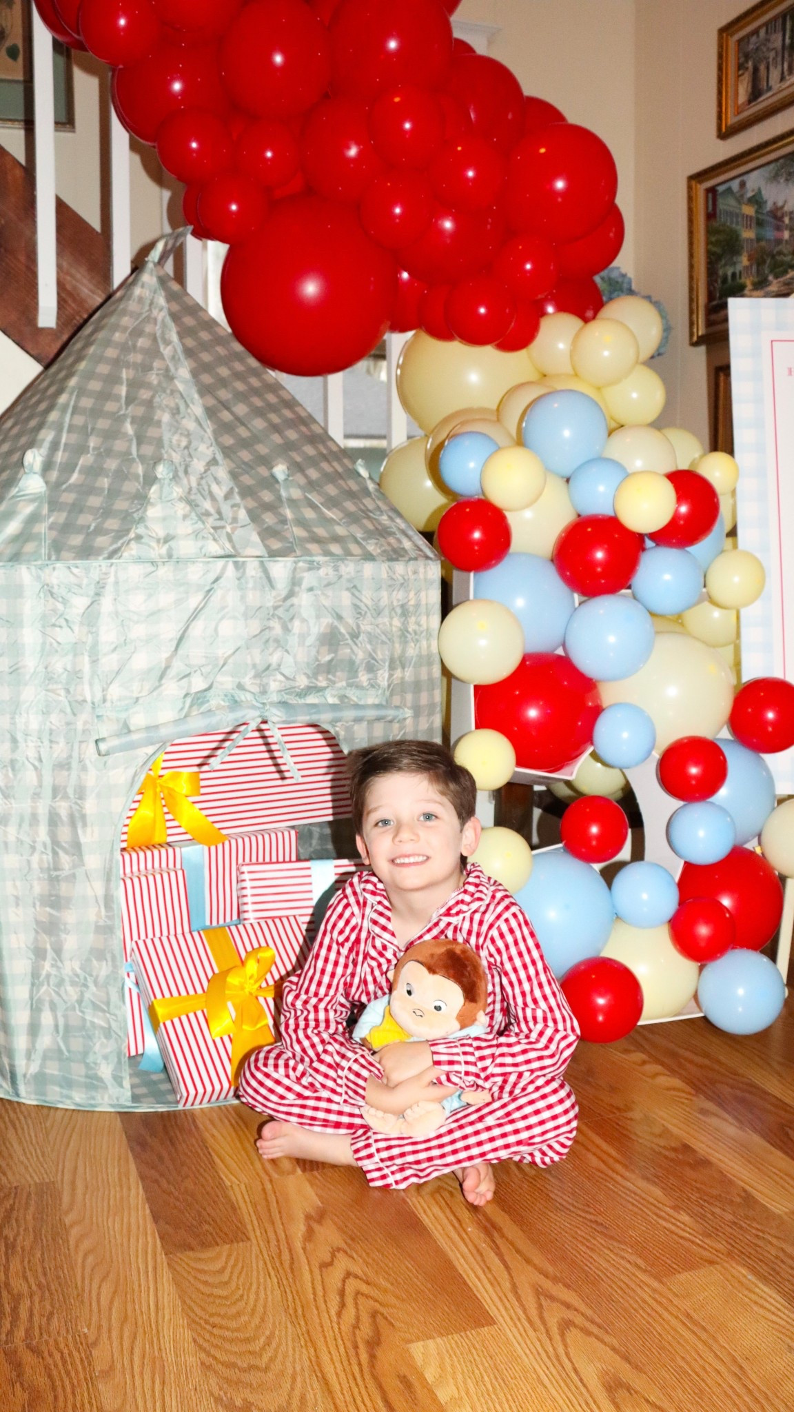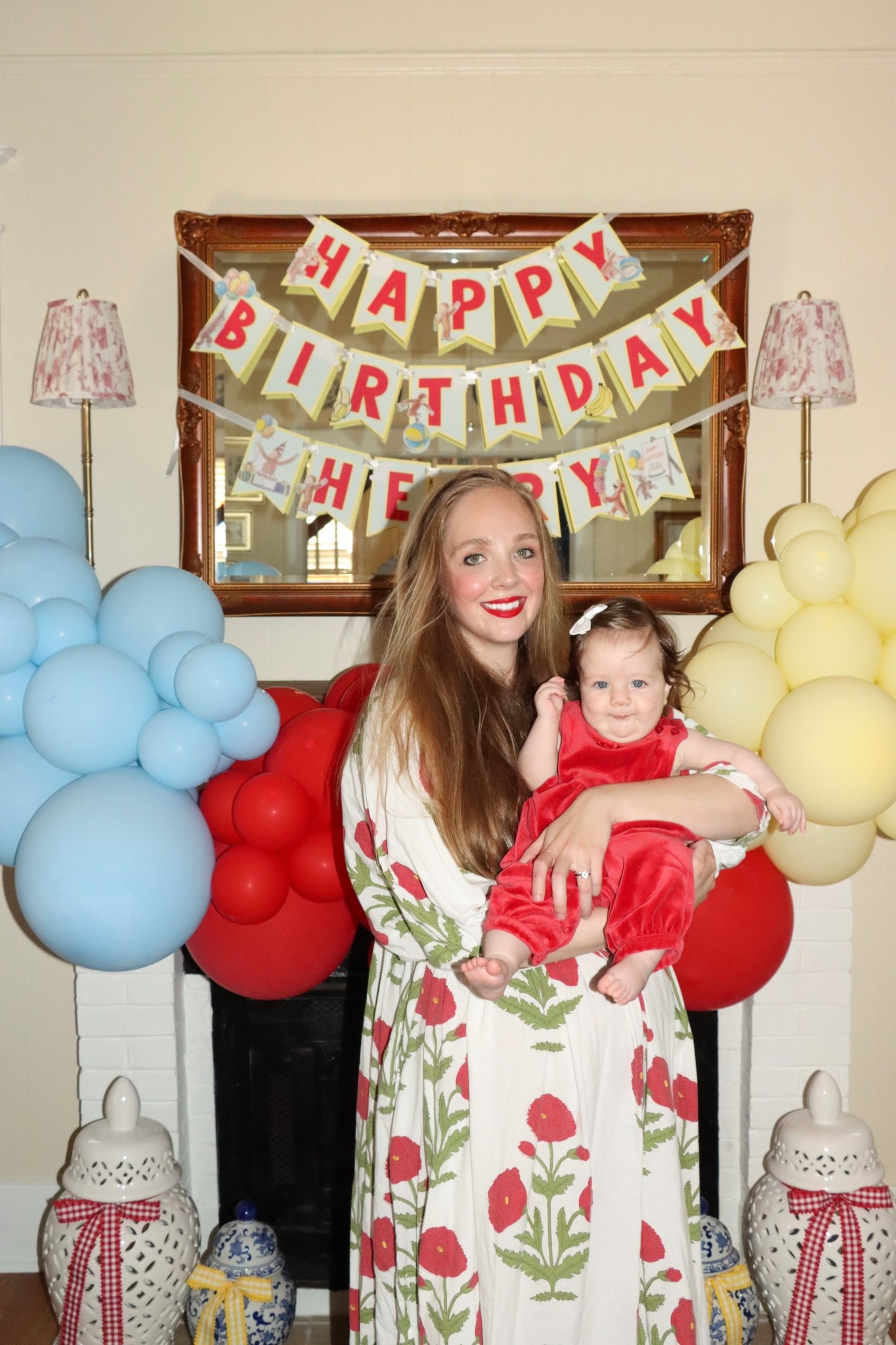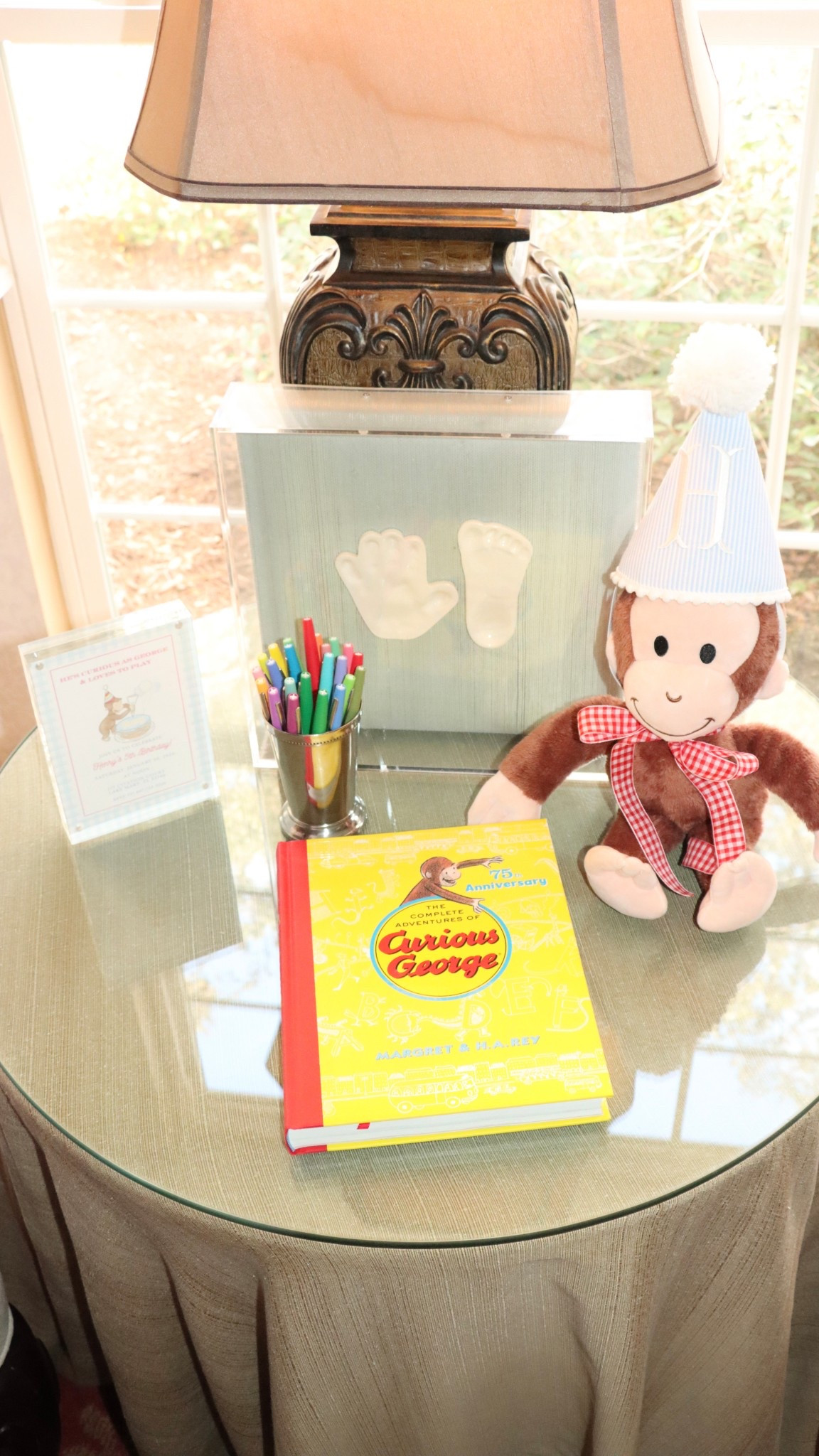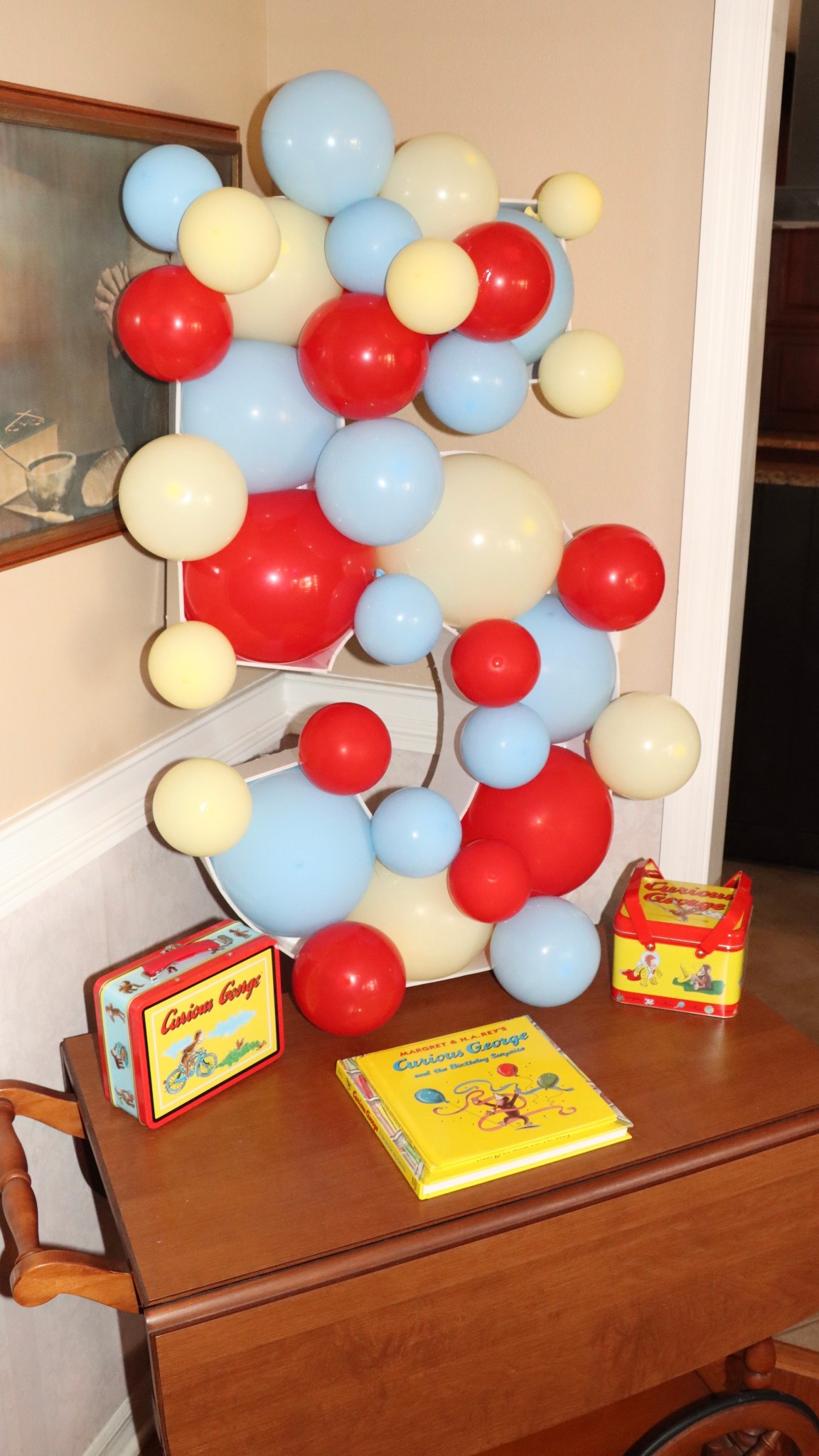 Curious George banner and balloons🎈🐵🩵🍌