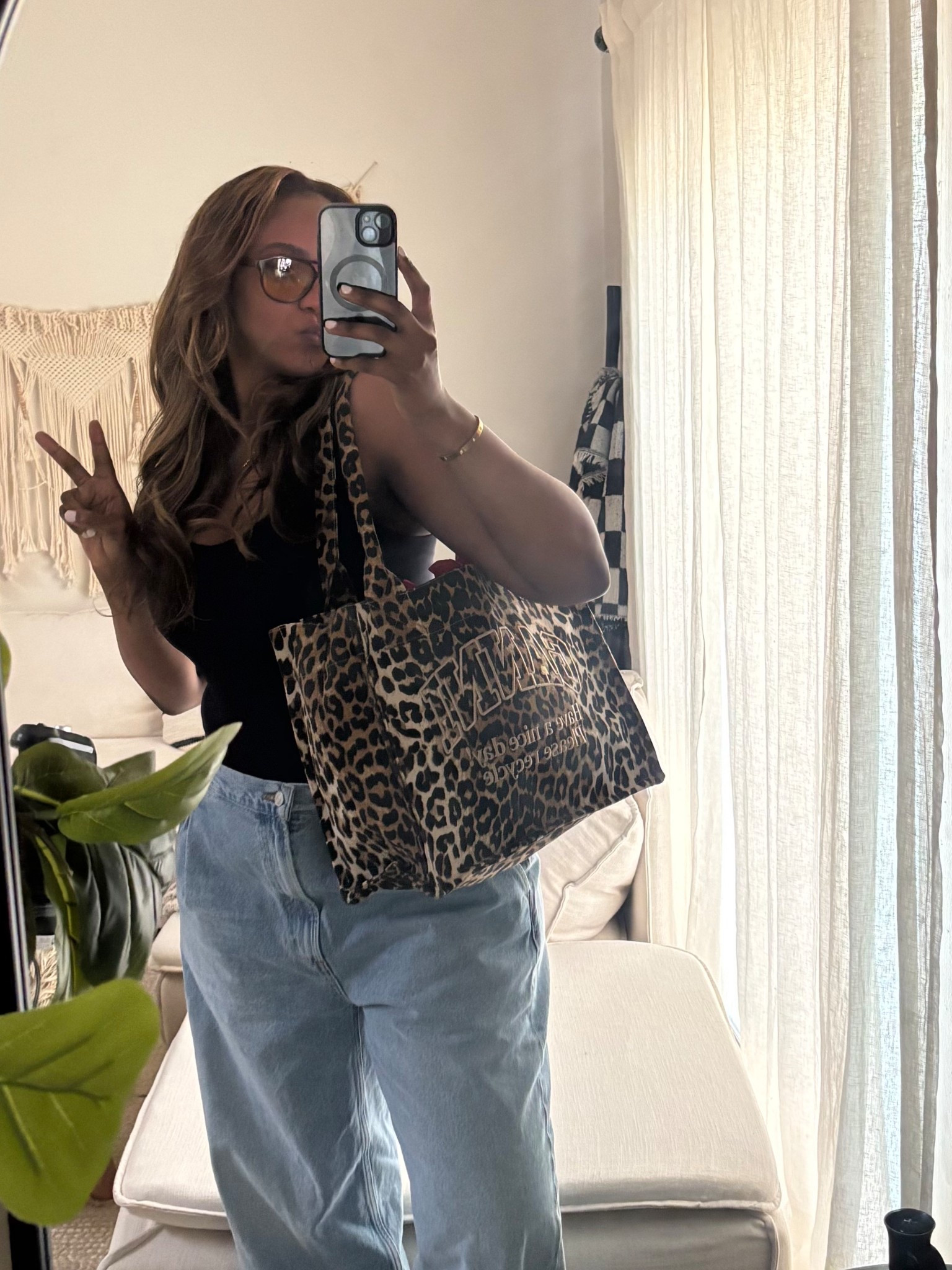 Leopard print denim, Good American review, tall girl style, oversized jeans
