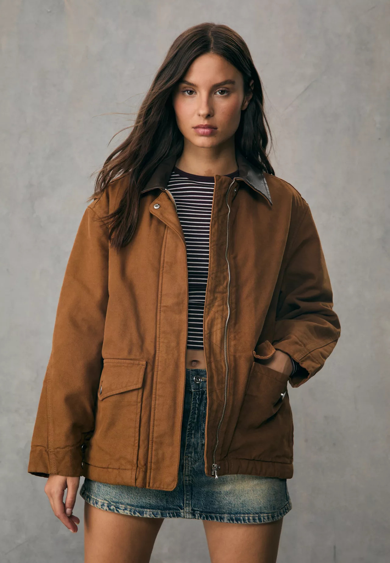 Parka combinada efecto piel | Stradivarius EspaΓ±a