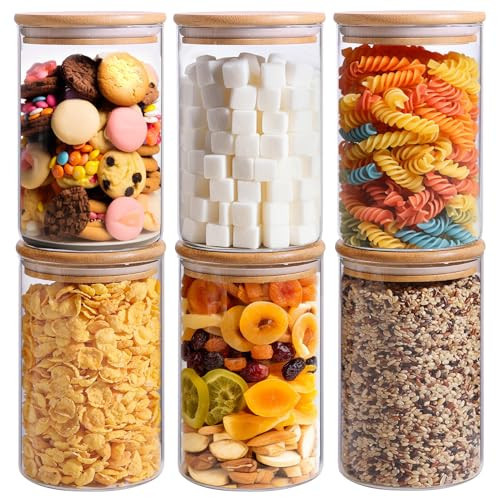 ComSaf 32oz Glass Storage Containers with Lids, Glass Jars with Lids, Clear Food Storage Jar, Round Canister Set of 6, Pantry Organizers for Cookie Pasta Flour Rice Tea Coffee Bean