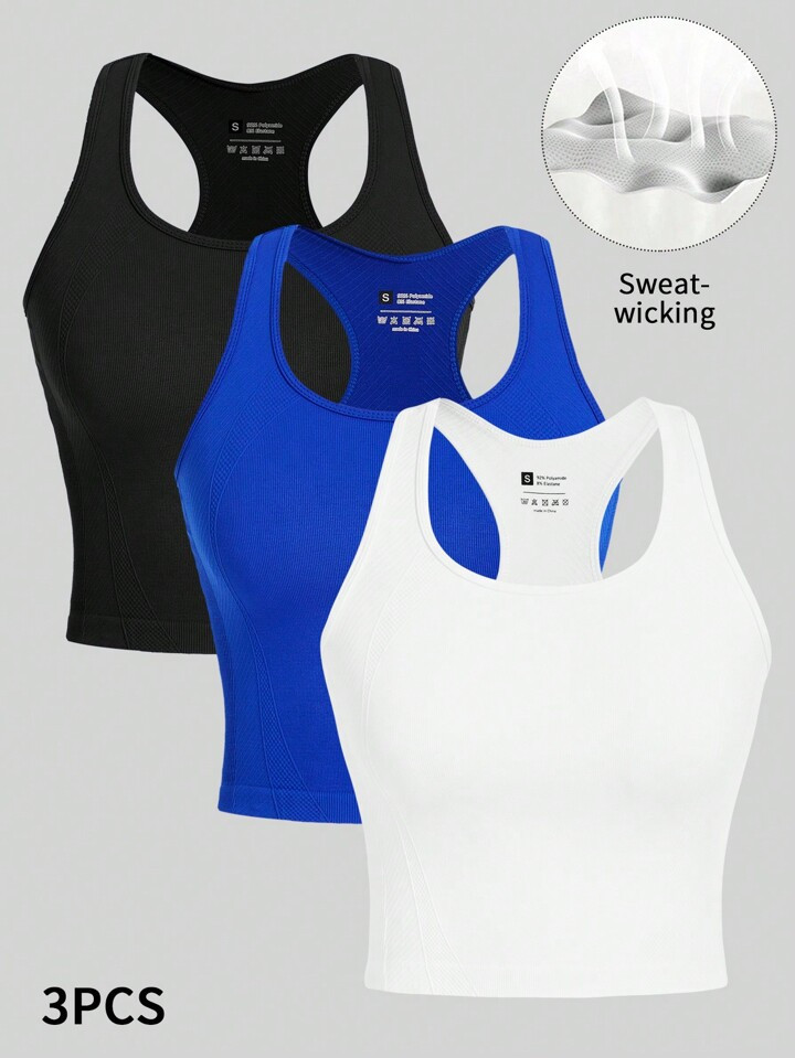 SHEIN Sport Seamluxe Solid Rib Knit Sports Tank Top Workout Tank Tops Gym Top Fitted Shirt | SHEI...