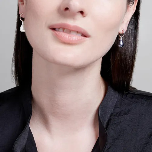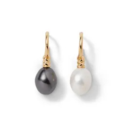 Venus Pearl Silver Drop Earrings, Black/White