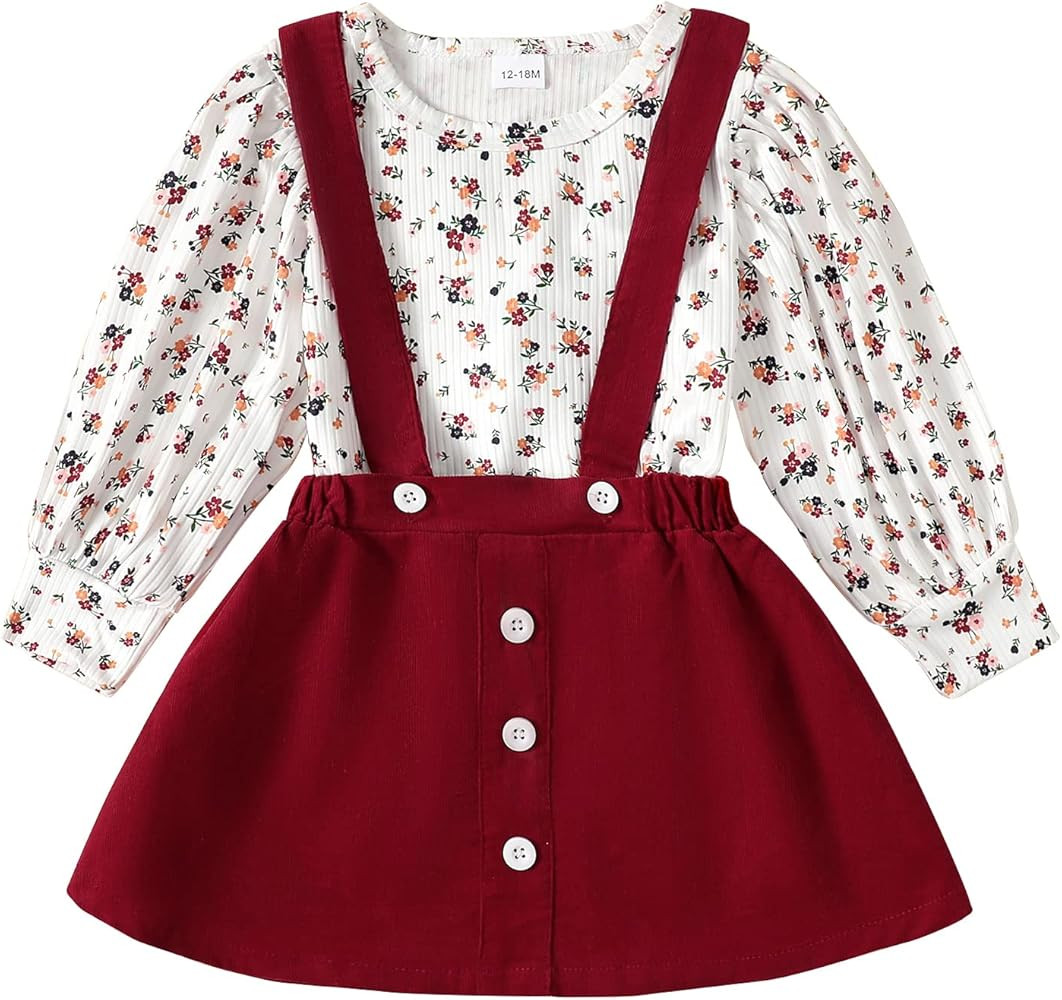 Toddler Girl Clothes Overall Outfits Infant Long Sleeve Stripe Top Braces Skirt for Girls Fall Winte | Amazon (US)