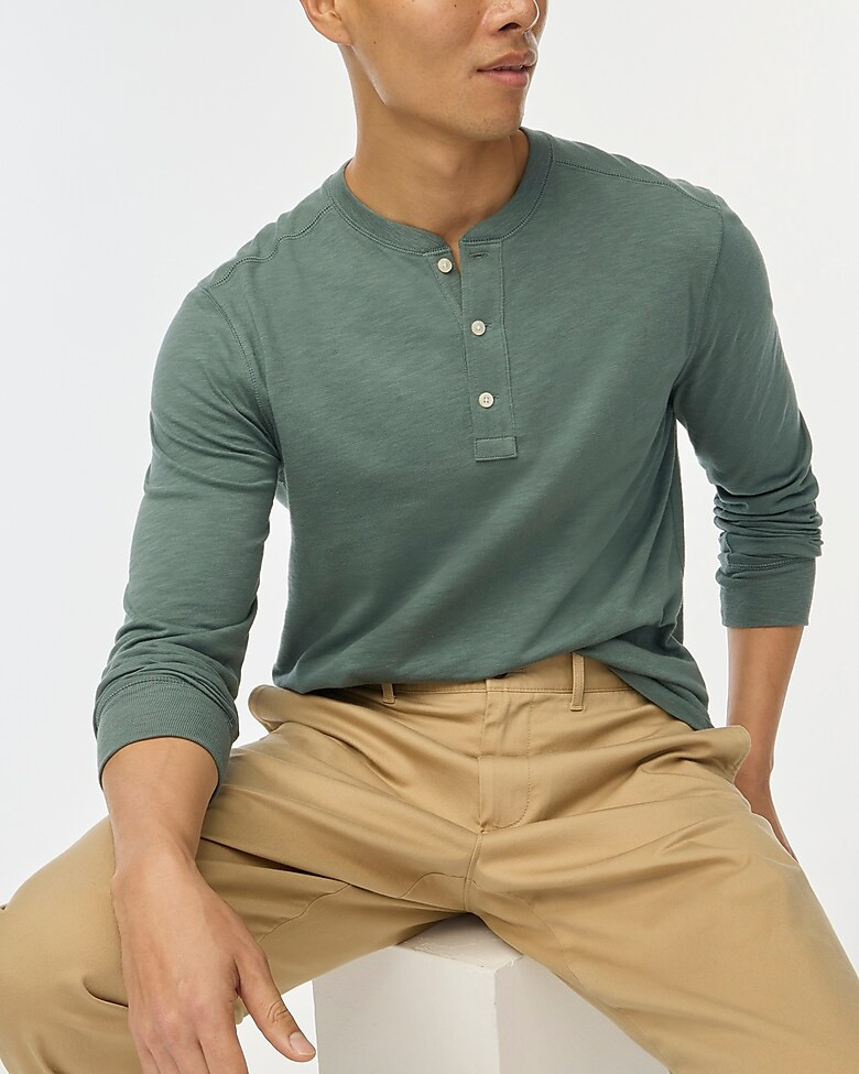 Long-sleeve henley in slub cotton