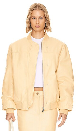Leather Bomber Jacket in Straw Yellow
