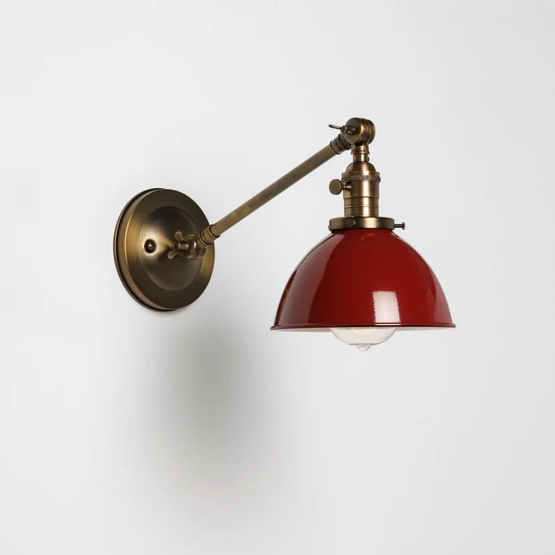 Wall Sconce Lighting With Red Metal Dome Shade - Etsy