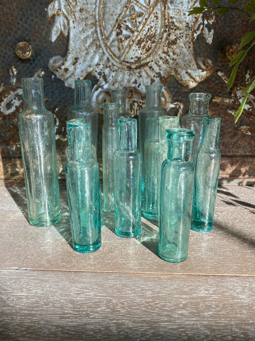 Set of 5 Antique English Cylinder Aqua Glass Bottles Set of 5 Assorted Sizes - Etsy